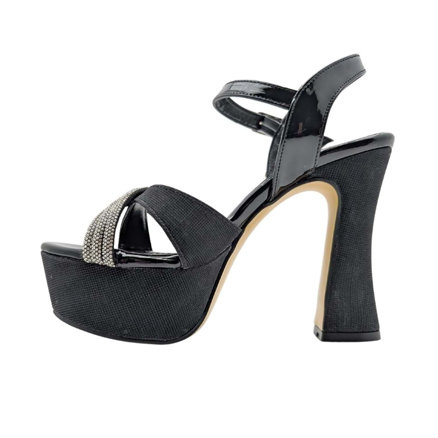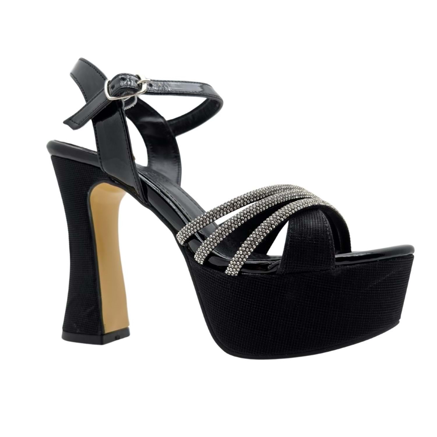 - Yüksek Platform Topuk: 12 cm'lik yüksek topuk ve 4 cm'lik platform yüksekliği, hem şıklığı hem de konforu bir arada sunar.