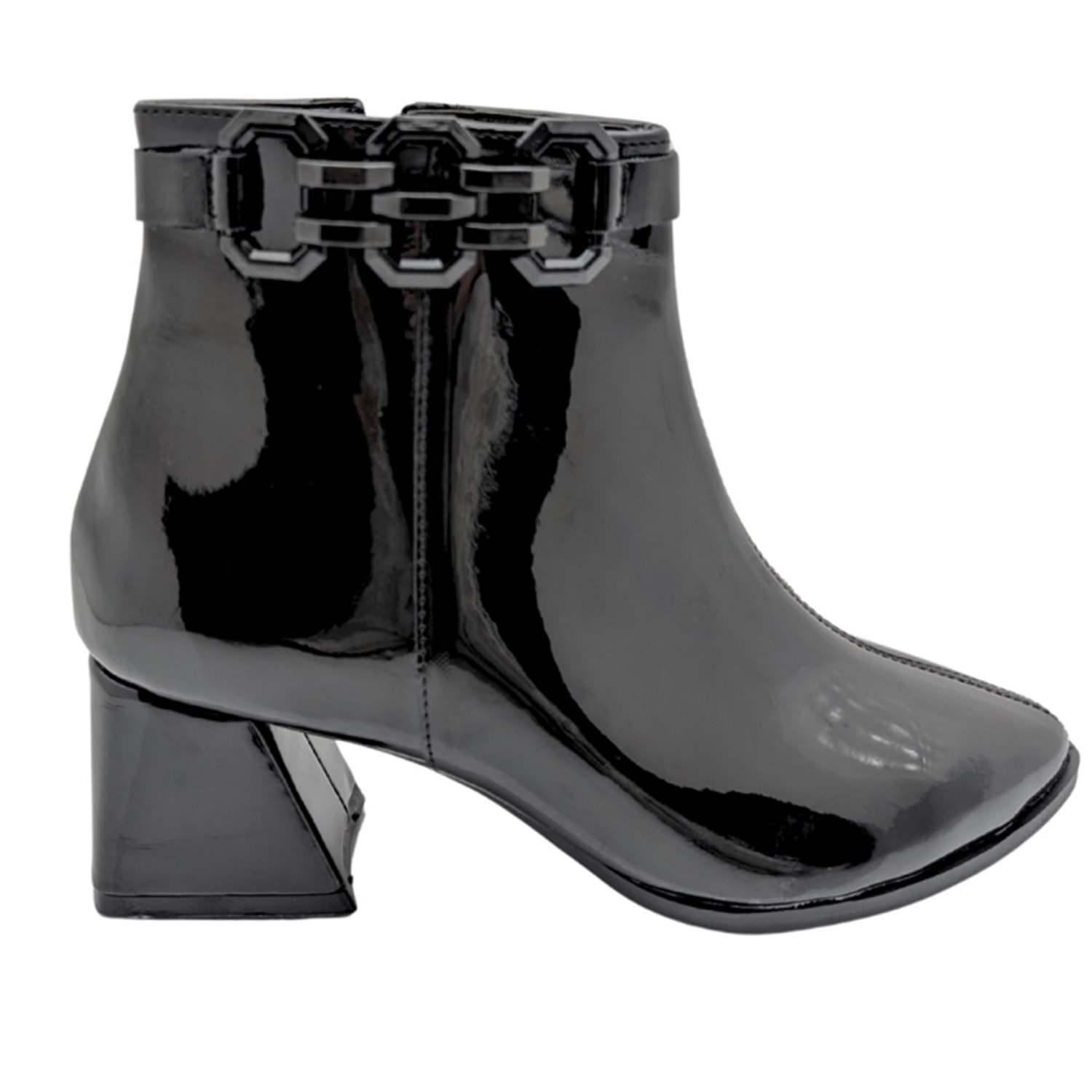 Modern, iddialı ve şık... Xhaos, adımlarınıza güçlü bir stil imzası atmak için tasarlandı. Göz alıcı parlaklıktaki rugan materyali ve sivri burun kesimi ile feminen bir duruş sergilerken, bileği saran büyük zincir detayıyla tasarıma Cinsiyet ve kategoriyenilikçi ve çarpıcı bir dokunuş katıyor. Hem şık hem de rahat bir yürüyüş sunan blok topuğu sayesinde, günün her anında konforunuzdan ödün vermeden stilinizi konuşturabilirsiniz.