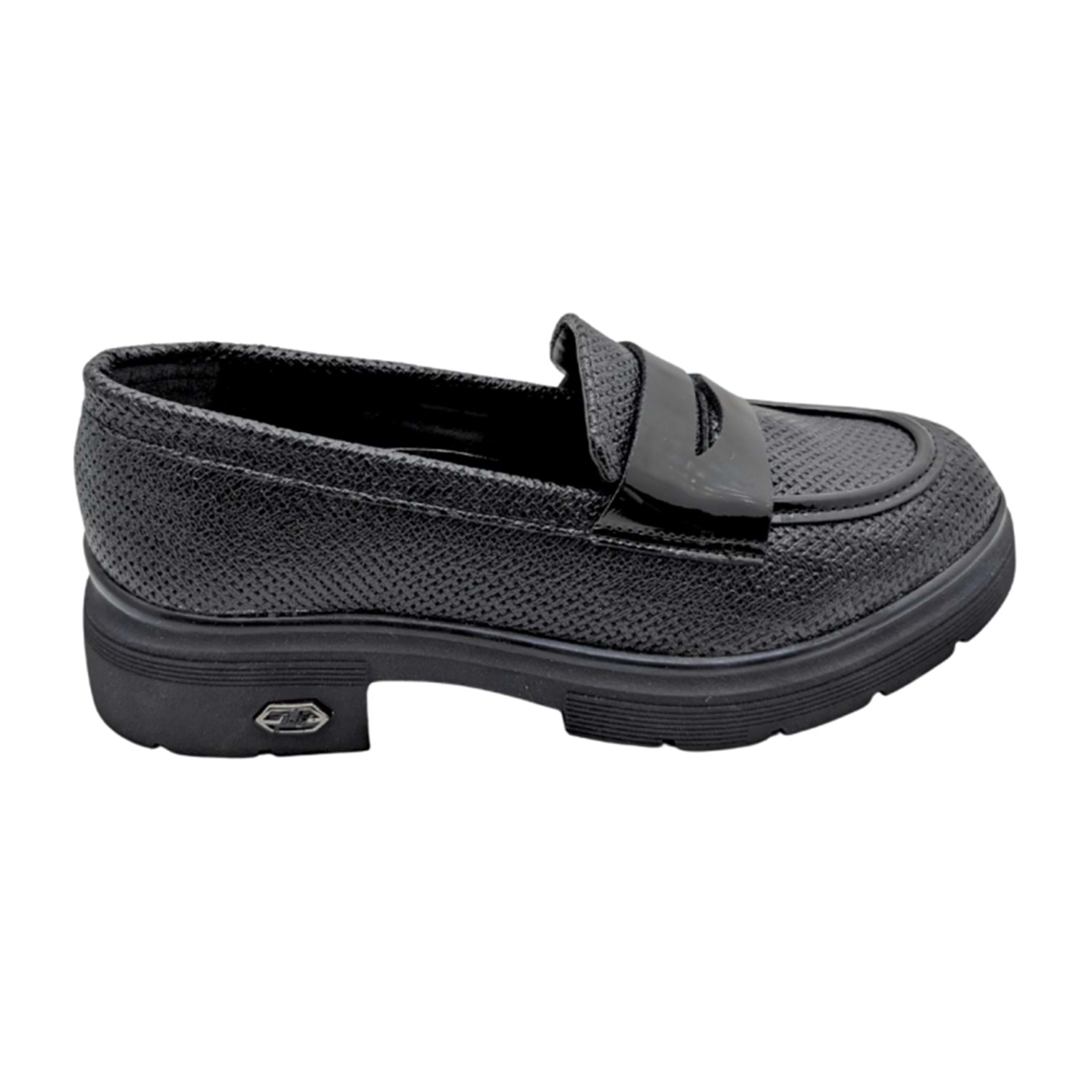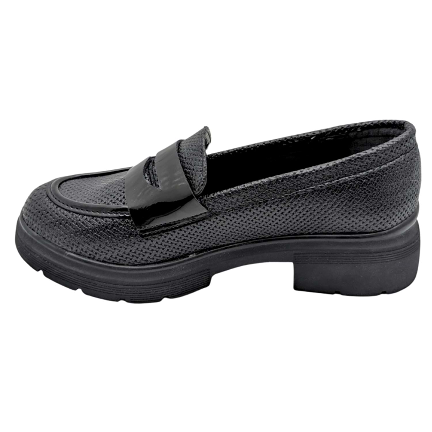 Lgoth, kadın loafer, topuklu loafer, makosen, chunky loafer, kalın tabanlı ayakkabı, rugan detaylı ayakkabı, dokulu ayakkabı, siyah loafer, ofis ayakkabısı, günlük ayakkabı, rahat ayakkabı, Lgoth model ayakkabı, kadın ayakkabı.