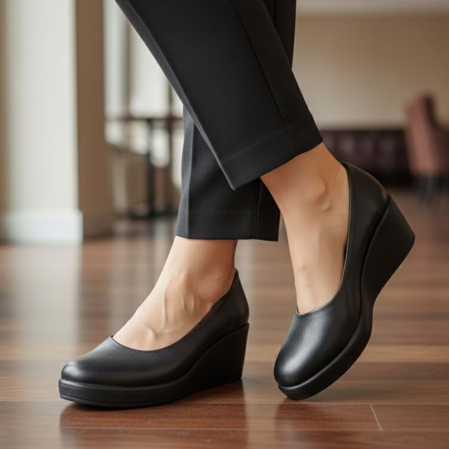 Bu konfor ve zarafet sunan ayakkabı, profesyonel gardırobunuzun temel taşıdır. Kumaş pantolonlar, takım elbiseler, kalem etekler ve klasik elbiseler ile kusursuz bir uyum sağlar. Uzun iş günleri, toplantılar veya ayakta kalmayı gerektiren tüm durumlar için ideal bir seçimdir.